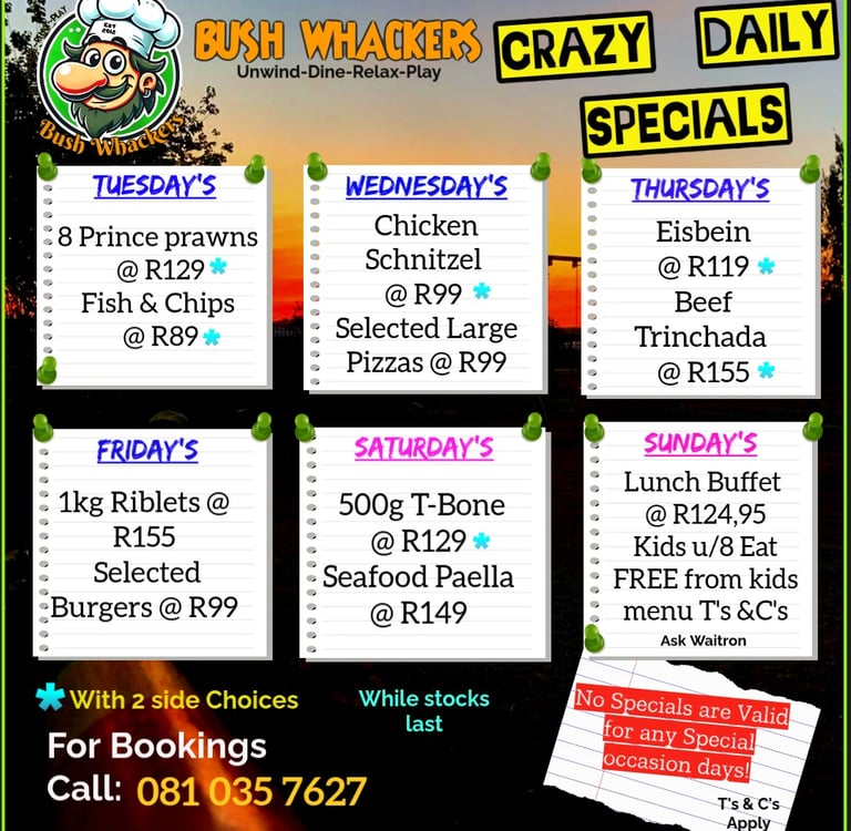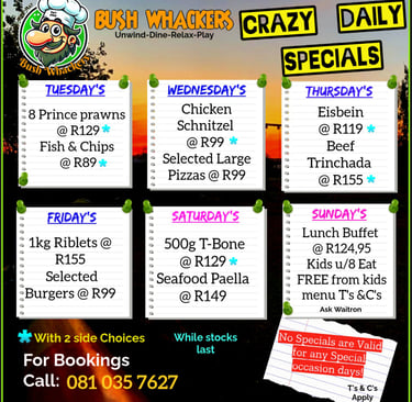 Book your table at Bush Whackers for a delightful dining experience with live music and great food.